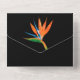 Elegant tropical bird of paradise flowers on a black background accent these tri-fold wedding invitations with your details in chic lettering in sections on the front and back and a detachable RSVP card for guests to complete and return. **REMEMBER to put a stamp on the RSVP card section and include envelopes on your order to mail invites! MATCHING items in our store.