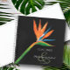 Elegant tropical bird of paradise flower on a black background accents this wedding guest book with your details in chic lettering on the front. Guests can sign their best wishes, even add instant photos in this elegant spiral bound wedding guest book. CHOOSE THE STYLE PAGES YOU WANT INSIDE from 10 available!