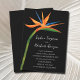 Tropical exotic bird of paradise watercolor flower on a black background makes a beautiful wedding invitation with an exotic flair. COORDINATING rsvp cards, reception cards, plates, napkins and more in our store.