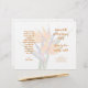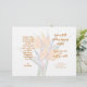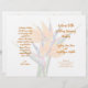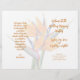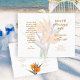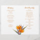 Folded wedding program template with orange bird-of-paradise flowers. White paper with four pages to customise in script and printed orange text. Include a message to family and friends on the last page / back of program when folded.