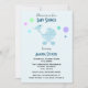 A cute powder blue baby shower invitation. A blue bird sits on a power blue baby carriage minding her little baby bird. A couple of playful polka dots surround the baby carriage. Personalise with your own party details.