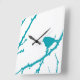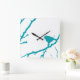 Bird on a Branch Silhouette_Turquoise Square Wall Clock