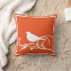 Gorgeous pillow with a white design that features a bird on a swirling branch. There's a border of white as well. We're showing this on a brilliant orange background, but the genius is that you can choose literally any colour you want for the background. Match your sofa, contrast with walls, create any colour pillow you want. It's super simple, just choose "customise this design".