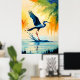 bird painting tricolored heron catch fish in swamp poster