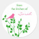 Preppy and whimsical kitchen baking stickers with a cute pink bird on green tree branches. Trendy and modern from the kitchen of labels for baked and canned goods.