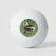 This unique golf ball features a cute little grebe floating on the calm water. This animal's fluffy back feathers stand out against the smooth water surface. Green grasses and reeds as well as the adorable bird are reflected in the water in this nature photo.