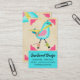 Super cute bird carrying a measuring tape, scissors and spools of thread on this craft show business card for a seamstress or sewing products.
