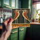 This ceramic tile features two birds reminiscent of the iconic style of Mackintosh. He was a prominent Scottish architect, designer, and artist of the Art Nouveau movement. Clean lines, geometric shapes, and a strong sense of symmetry characterise his work. These elements are beautifully represented in our collection of ceramic tiles.