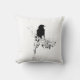 This decorative throw pillow features the silhouette of a redwinged blackbird perched on a wild flower.