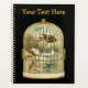 This planner is black with a bird on a branch overlooking a snow covered farm by a running stream inside a gold and white birdcage. Customise your text on the front with the template.