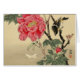 Bird perched on branch, watching a butterfly, with large blossom on bush. Vintage print from the Library of Congress collection (Japanese prints and drawings). Fine eample of traditional old japanese art. Add some orient flavour.