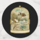 Bird Winter cabin Scene in Gold Birdcage Black Confetti