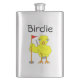 Birdie in curly text with a yellow chick holding a golf club and the flag in a golf hole is a funny gift design for golfers.