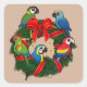 Colourful cartoon macaws spread holiday cheer by perching together on a Christmas wreath. The large parrots decorate the wreath along with a red bow and pretty yellow ribbon. You can customise this gift! Move the design around, change the background colour or style, add text or images -- make it your own!