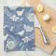 Serene blue and cream tea towel with bird and flower design.