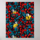 Birds and dog rose hips, blue and red poster