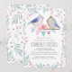 Birds couple cute pink flowers watercolor woodland frame bridal shower invitations
