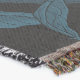 A quality printed throw has its advantages. This is a much finer weave throw than its loopier cousins, and though lighter, it is worth the investment for custom room accessorizing. The back is much prettier than the typical brown, and the fringe on the long sides very vivid, the selvage nicely done. Before photographing, I washed the throw in cold water, delicate, with a thicker woven throw the same size. On tumble dry low, this throw was dry in half the time as the other. This is a very practical quality if you use throws for furniture covers or to wrap up in frequently. The sleekness of the fabric makes it a great layer for accenting or protecting without the feeling of sitting on too much stuff. Perfect for napping or when you feel a light chill coming on. The color printing is beautiful and on this fabric, matched the design and color of my Photoshop image. This is an advantage for blending room fabrics and colors. The fringe on the short sides prints the colors from the design image and therefore varies from the side fringe. I streaked a white fractal line through the plaid pattern to give the illusion of weaving. This printed as crisp as an illusory thread, and put some white in the short side fringe, showing another advantage of print vs loomed- for artistic purposes, line lines, detail, and color integrity can be planned and preserved. My loomed throws have color limitations and more of a needlepoint texture. Print throws reproduce an exact image. The throw felt a little stiff straight out of the package, but this went away in the first delicate wash. Of course I searched the wash water for ink or bleeding and there was none.