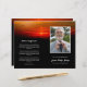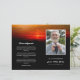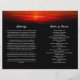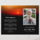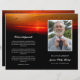 Sunrise-themed funeral program featuring a photo of your loved one against a background of a gathering of birds soaring across a glowing red sky. Add their name and years living along with obituary, order of service, and acknowledgements in a combination of modern and elegant white fonts against a black background. Bird at sunrise memorial service program you can fold yourself personalised with a photo of your loved one along with their name and years living. On the back you can write the obituary and program. Fold it yourself for a practical program!