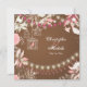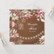 This enchanting wedding invitation features a beautiful flower garden in shades of pink, brown and white. There are silhouette birds and charming bird cages all beautifully lit with strings of garden lights. It is a great choice for spring, summer and autumn weddings.