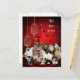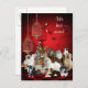 Postcard "we have moved". Red Black Check background, with coloured birds, tiger dogs cats. Customise with your own text.