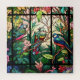 This stunning stained glass design features colourful birds perched among flowering plants.