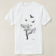 Linen coloured vintage style worn and tattered womens tshirt with an illustrated picture of a tree and birds flying out of it on the front, and 3 birds flying across the upper back. This stylish and unique shirt is perfect for the edgy alternative girl.
