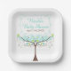 Birds Hearts Tree Blue and Green Baby Shower Paper Plate