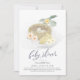This cute girl baby shower invitation features a bird's nest with eggs, a blue bird, and chicks with floral/flowers in watercolor on a white background. The reverse side features a light apricot/orange pink background with white polka dot patterns. Change the background colour on the back and personalise it for your needs. You can find matching products at my store.