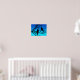 Print depicting two little birds, perched on a branch, as a black silhouette against a evening sky gradient of deep turquoise to cobalt blue, with a sprinkling of stars