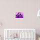 Print depicting two little birds, perched on a branch, as a black silhouette against a twilight sky gradient of deep purple to soft violet, with the slender crescent of a new moon