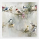 Vintage oil painting birds on a branch .. muted colours of various birds , loosely painted in oils