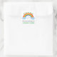 Colourful bookplate stickers / book labels for kids featuring green birds standing on a rainbow. At both ends of the rainbow are blue clouds and below it blue raindrops. Customisable text "this book belongs to". Personalise the name. Cute design for children, ideal for labelling school books and other books. Turn into general property labels by changing the text.