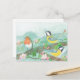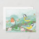 Birds singing on a blossoming tree branch postcard