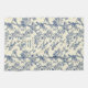 A lineup of songbirds with branche and foliage in a toile de jouy print. Delicate branches, and birds perched on blooming twigs with background of cream and print in cobalt blue.