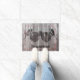 A rustic welcome doormat printed with a pair of birdwatching binoculars and two woodland forest Pileated Woodpeckers perched on the binocular lenses. The perfect gift for birdwatchers everywhere.