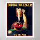 Colourful poster featuring early 20th century Birra Metzger Torino poster by Leonetto Cappiello. Great poster for the den, game room, hunting lodge, or for your own personal bar area.