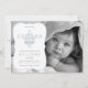 Simply add your precious little one's colour or black and white photo as well as family names and birth details and personalise this sweet blue and white fleur de lis vintage Christian cross design to announce your new baby boy. Original design by Holiday Hearts Designs (all rights reserved).
