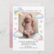 Welcome your precious little one to the world with this enchanting birth announcement card! Adorned with fluffy clouds, stars and a rainbow in a soft watercolor style, this elegant design creates a serene and dreamy atmosphere to showcase your newborn's arrival. A colourful, cute and modern aesthetic. Personalise the card with a vertical portrait photo of your baby and easily edit the text templates for a custom new baby announcement card.