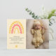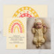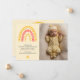 Welcome your little sunshine with this adorable birth announcement card! This vibrant design features a cheerful rainbow adorned with sweet daisy flowers and playful hearts. The yellow and coral colour palette creates a warm and joyful atmosphere, perfect for celebrating the arrival of your precious girl. Great for Spring and Summer babies! Personalise the card with a vertical portrait photo of your newborn and easily edit the text templates for a custom new baby announcement card.
