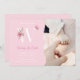 Cute pink baby announcement with letter W initial in white and pink. The initial is decorated with hand drawn florals and butterfly. This birth announcement is simple and yet elegant; it is perfect to announce the arrival of your little princess.