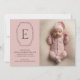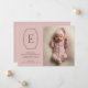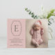 Introduce your precious newborn in style with a chic and modern birth announcement. Featuring a stylish monogram with your baby's initial nestled within an elegant geometric frame. A minimalist and sophisticated design on a pink background. Personalise this card with a vertical portrait photo of your newborn and easily edit the text templates for your own custom baby announcement. Perfect for sharing the news of your little one's arrival with loved ones.