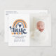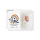 Baby Photo Template Modern Little Wonder Birth Announcement Postcard features one of your favourite photos of your newborn baby boy or girl with the text "Little Wonder" in blue and orange hand lettered calligraphy script, accented with a cute rainbow and love hearts. Add additional information such as your newborn baby's name and birth information. On the reverse add your personalised custom message announcing the arrival of your newborn baby or a message of thanks from the parents and family. PHOTO TIP: centre your photo before uploading to Zazzle. Designed by ©Evco Studio www.zazzle.com/store/evcostudio
