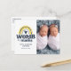 Twins Baby Photo Template Modern Happy Womb Mates Announcement Postcard features one of your favourite photos of your newborn twins boy or girl with the text "Womb Mates" in hand lettered blue and yellow calligraphy script, accented with a rainbow and love heart. Add additional information such as your newborn babies names and birth information. On the reverse add your personalised custom message announcing the arrival of your newborn baby or a message of thanks from the parents and family. PHOTO TIP: centre your photo before uploading to Zazzle. Designed by ©Evco Studio www.zazzle.com/store/evcostudio