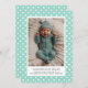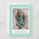 Announce the arrival of your little one in style with this adorable polka dot birth announcement card! This modern design features a playful pattern of colourful polka dots on an aqua background. It's the perfect way to introduce your newest family member with a touch of fun and personality. Personalise this card with a vertical portrait photo of your newborn and easily edit the text templates for your own custom baby announcement.