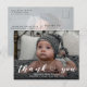 Modern Photo Baby Birth Announcement Postcard. Design featuring thank you script, single photo of the baby, birth stats, date and a name on the front. Personalize with another photo and your thank you message on the back.