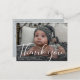 Modern Photo Baby Birth Announcement Postcard. Design featuring thank you script, single photo of the baby, birth stats, date and a name on the front. Personalize with another photo and your thank you message on the back.