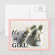 Customise this birth announcement postcard with your own text, or write your message in by hand. Border colour can be customised. Matching postage stamps also available.