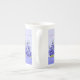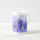 A bone china mug with hand-illustrated flower-of-the-month frieze and birthstone for July.