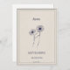 Gift card date to personalize. Flower of the month of birth of September: Aster. Solid white face. Original design made on Procreate.